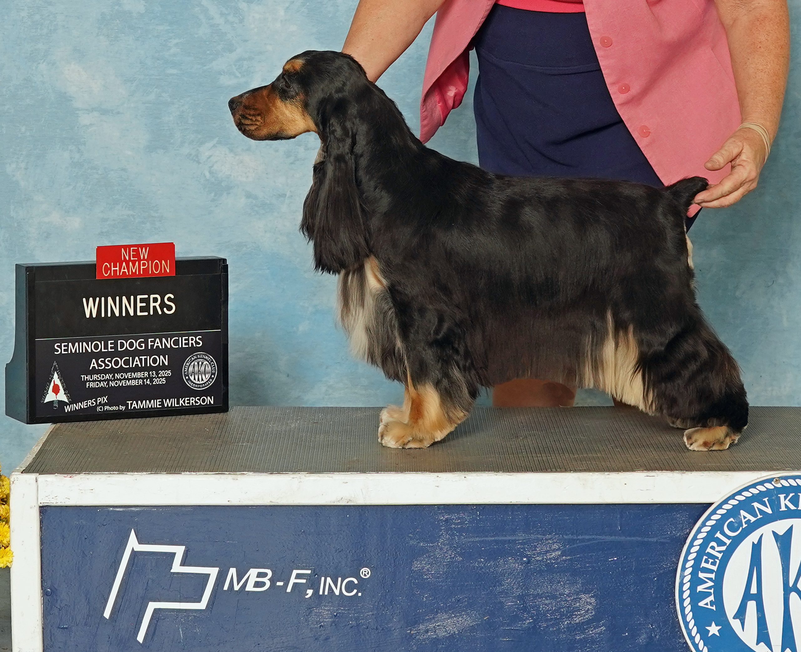 Gigi has done very well in a short period of time! I brought her home in mid June and had her at her first show in short order. She won her first major in Greensboro, NC this past August 2025 and at the Tennessee Valley English Cocker Spaniel Fanciers Specialty in October 2025, under esteemed breeder judge, Mr. Doug McFarlane, she was BOW for her second major! She now only needs a few singles to finish her AKC Championship. Gigi won her last five points at the shows in Ocala, FL in November 2025.